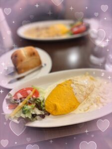 おはようゆるです🐇友達と渋谷でオムライス食べいったよーദ്ദിᐢ-