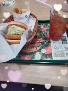 大好きなオニオンリングと一緒にバーガー食べれて幸せ💕