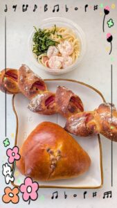 今日のランチは大好きなパン屋さんのパンとセブンのサラダスパ🍞🥗