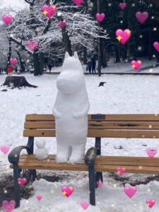 なみです💛雪降った日に井の頭公園行ったら雪だるまとムーミンがいた⛄❄