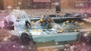 昨日動物園行ったらカピバラさんがゆず風呂入ってたよ🛁