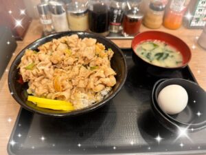 食欲そそるガッツリなお肉に卵のトッピングは